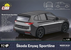 Der Bausatz Skoda Enyaq Sportline ist ein verkleinertes Modell im Maßstab 1:35, das die charakteristischen Formen des Originalfahrzeugs Škoda Enyaq iV getreu reproduziert. Es hat drehbare Räder mit Reifen, die ideal für Bewegung während des Spiels sind. Dieses Modell wird nicht nur Kinder, sondern auch erwachsene Bausatzfans, Sammler und Autoliebhaber begeistern.