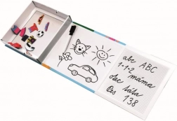Ermöglicht die Kombination aus Schreiben, Wischen und Zusammenstellen magnetischer Bilder in einem Set. Dieses Set ist ideal, um das Schreiben von Buchstaben und Zahlen zu üben und bietet gleichzeitig viel freie Fläche zum Malen mit dem abwischbaren Stift.
