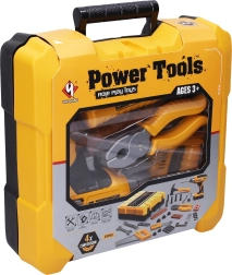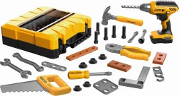 Enthalten ist eine vielfältige Auswahl an Werkzeugen und Zubehör für fantasievolles Spielen und Bauen. Dank der sicheren Ausführung eignet sich das Set für Kinder, die Erwachsene nachahmen und die Grundlagen im Umgang mit Werkzeug erlernen möchten.
