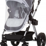Großes verstellbares Verdeck mit Sonnenblende, gepolsterte 5-Punkt-Gurte, geräumiger Korb, abnehmbarer Bügel, Fußsack, Tasche, Getränkehalter und Moskitonetz – alles im Lieferumfang enthalten.