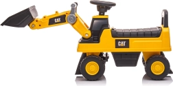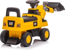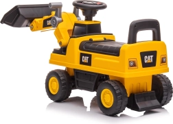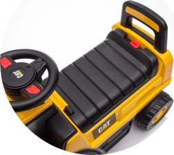 Kinder-Rutschfahrzeug im Stil eines Baubaggers mit CAT-Lizenz bietet realistischen Spielspaß und fördert die Entwicklung motorischer Fähigkeiten. Es verfügt über eine bewegliche Schaufel und einen Arm, ein drehbares Lenkrad mit Hupe, einen bequemen Sitz mit Stauraum sowie eine stabile Konstruktion für sicheres Fahren drinnen und draußen.