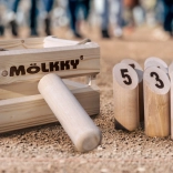 Mölkky ist ein Spiel, das Einfachheit mit Taktik und Glück verbindet und Spieler unabhängig von ihrem Alter anspricht. Die Spieler werfen mit einem Holzstab und versuchen, nummerierte Kegel umzuwerfen. Ziel ist es, genau 50 Punkte zu erreichen, aber Vorsicht, Überschreitung dieser Punktzahl bedeutet einen Rückfall auf 25 Punkte.