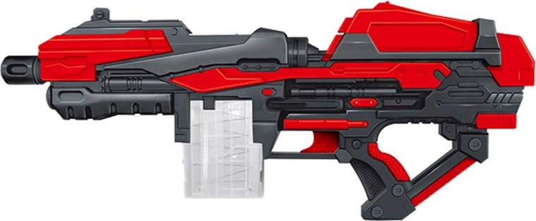 Lustige Kinder-Spielzeugwaffe für actionreiche Spiele: Maschinengewehr für Schaumstoff-Darts mit einer Länge von 54 cm, mit ON/OFF-Schalter und komfortabler Magazinauslösung. Enthält ein Magazin für 6 Darts, im Lieferumfang sind 10 Schaumstoff-Darts enthalten. Stromversorgung über 4× AA-Batterien (nicht enthalten).