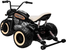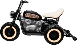 Das Dreirad ist so gestaltet, dass es einem klassischen Motorrad ähnelt, was jeden kleinen Liebhaber starker Maschinen begeistern wird.