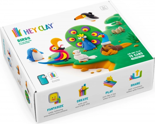 Aus der Modelliermasse HEY CLAY können Kinder unzählige verschiedene Figuren, Tiere oder Lieblingshelden gestalten. Nach dem Modellieren ist es wichtig, die Modelle an der Luft ausreichend aushärten zu lassen – danach können sie Teil weiterer Spiele und viel Spaß werden. So lassen sich ganz einfach eigene Figuren herstellen, oder man verstaut die Hey Clay wieder im Becher für weitere kreative Projekte. Mit der kostenlosen Hey Clay App (iOS, Android), die zusätzliche Möglichkeiten zur Entfaltung von Fantasie, Farben und magischem Gestalten neuer Figuren bietet – ein Code im Wert von 5 USD zum Freischalten der App liegt jeder Packung bei. Das Hey Clay Set enthält 2 Kunststoff-Bildhauerwerkzeuge, 15 Döschen mit weicher, feiner und duftender Knetmasse sowie einen Zugangscode zur App für die gekaufte Serie. Die im Set enthaltenen Farben ermöglichen es Ihnen, 6 Figuren zu erschaffen.