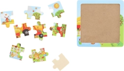 Das Holzpuzzle Ernte mit 9 Teilen ist eine großartige Wahl für die ersten Puzzleversuche. Dank der hochwertigen Holzgrundplatte und der robusten Teile lassen sie sich gut greifen, und jeder Erfolg stärkt das Selbstvertrauen. Die eingefräste Kante der Grundplatte hilft, die Teile an die richtige Stelle zu führen.