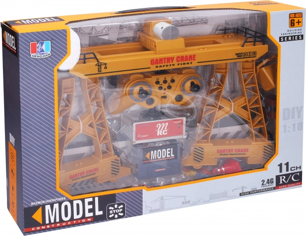 Dieser realistische RC-Portalkran vermittelt Kindern ein aufregendes Baustellenerlebnis. Die Fernsteuerung ermöglicht Vor- und Rückwärtsfahrt, Drehen auf der Stelle sowie präzises Heben und Absetzen von Lasten. Das Set enthält einen Container, eine Schüttmulde, Fässer, Baumstämme und Kegel für authentische Bauszenarien.