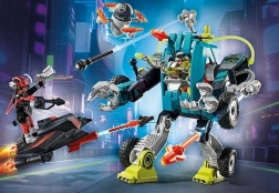 Entdecken Sie die actionreiche Welt von PLAYMOBIL: Das Set Roboter vs. Gleiter bietet alles für mitreißende Gefechte und wagemutige Missionen. Ein fliegender Gleiter mit Schussfunktion, ein beweglicher Roboter mit Abschussvorrichtung und Drohne sowie ein Figuren-Duo fördern die kreative Spielwelt und die Fantasie.