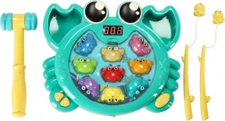 Das Spielzeug bietet zwei Spielmöglichkeiten – Krabben mit einem Hammer schlagen und Fische mit einer Angelrute fangen.
