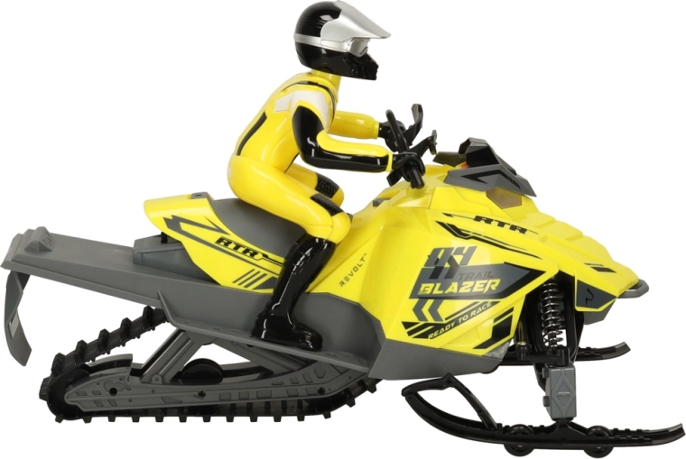 Erleben Sie eine adrenalingeladene Fahrt auf Schnee und Gras mit dem RC-Schneemobil REVOLT Trail Blazer. Dank der langen Laufzeit von bis zu 60 Minuten, der einfachen 2,4-GHz-Steuerung und der robusten Konstruktion aus hochwertigem Kunststoff und Gummi bietet es realistischen Fahrspaß für ältere Kinder und Erwachsene. Austauschbare Skier und Räder ermöglichen Fahrten unter verschiedenen Bedingungen, LED-Beleuchtung sorgt für Sichtbarkeit in der Dämmerung.