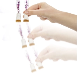 Die Beine der Puppen sind voller glitzernder Partikel, die sich beim Schütteln bewegen.