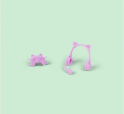 Enthalten sind auffällige Kopfhörer mit Ohren sowie ein kleiner Spielecontroller – perfekte Requisiten für Spielgeschichten und digitale Abenteuer.