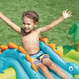 Dieser aufblasbare Pool mit originellem Dinosaurier-Design bringt jede Menge Spaß in den Garten. Kinder haben Freude am Rutschen und Spielen mit den Dinosaurier-Figuren, während die eingebaute palmenförmige Sprinklerdüse für zusätzliche Wassererfrischung sorgt.