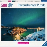 Entdecken Sie die Magie des Ravensburger Puzzles, das Sie in die faszinierende Welt der skandinavischen Landschaften mit Polarlicht entführt. Dieses 500-teilige Puzzle bietet stundenlangen Spaß, wobei jedes Teil präzise an seinen Platz passt und ein wunderschönes Bild entsteht.