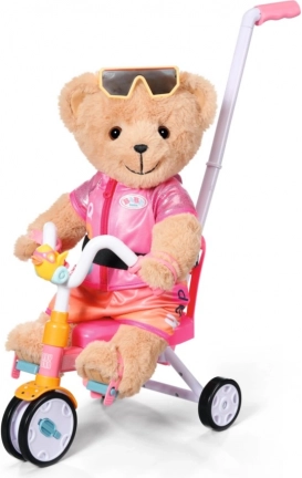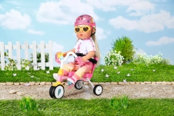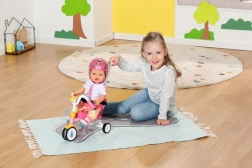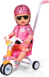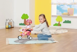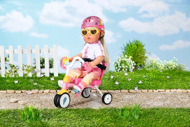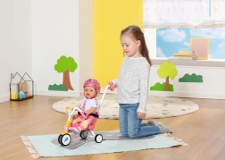Dieses rosa Dreirad ist für realitätsnahes Spiel mit BABY BORN Puppen konzipiert. Das Kind kann die Puppe mit der 45 cm langen Schiebestange schieben oder sie dank der Pedalschlaufen „treten“ lassen. Die robuste Konstruktion und das stabile Dreiradfahrgestell unterstützen eine sichere Fahrt drinnen und draußen.