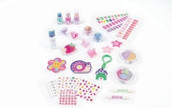 • Inhalt der Verpackung: Lidschatten, Körperglitzer, Lipgloss, Nagellacke, Nagelwickel, Feilen, Nagelsticker, Nagel-Juwelen.