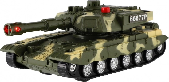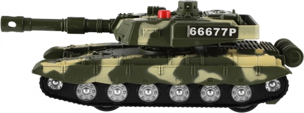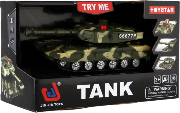 Auf in die Action mit dem robusten Plastikpanzer mit Schwungrad, der nach einem Anschubsen flott nach vorn fährt. Der drehbare Turm mit langer Kanone und realistische Details am Fahrgestell werden von eindrucksvollen Licht- und Soundeffekten begleitet, die jedes Spielszenario intensivieren.