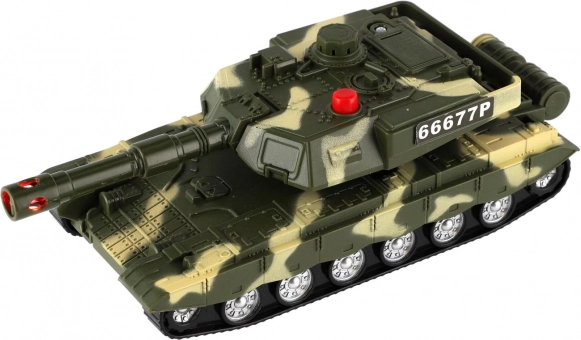 Ein realistischer Plastikpanzer mit 20 cm Länge begeistert kleine Soldaten mit dynamischer Schwungradfahrt, Lichteffekten und Sound. Dank drehbarem Turm und detailreicher Ausführung bietet er tollen Actionspaß zu Hause und unterwegs. Ideal für Kinder ab 3 Jahren.