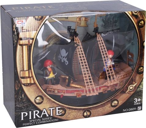 Dieses Piratenschiff bringt Kindern actiongeladene Abenteuer auf den Wellen der Fantasie. Realistische Licht- und Schusseffekte mit Sound werden über einen Knopf an der linken Schiffsseite ausgelöst und verleihen dem Spiel Spannung und Atmosphäre. Die zwei beiliegenden Figuren (7 cm) ermöglichen sofortige Geschichten über Schätze und Seeschlachten.