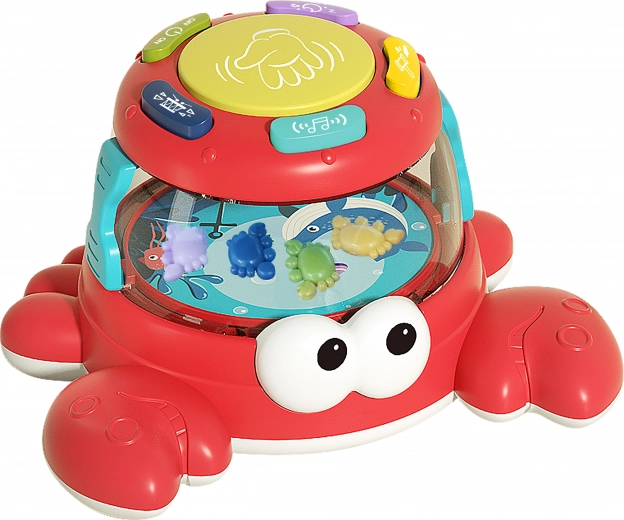 Die bunte Trommel in Form einer Krabbe ist das perfekte Spielzeug für kleinere Kinder, die ihre musikalischen und rhythmischen Fähigkeiten entdecken. Sie ist so konzipiert, dass sie mit ihren Farben und interaktiven Funktionen besticht: