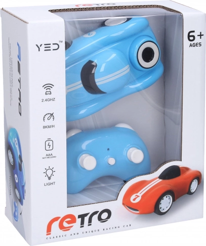 Retro Renn-RC-Auto 2,4 GHz, 15,5 cm. Geschwindigkeit 8 km/h, Reichweite 25 m, Lichteffekte. AAA-Betrieb. Spaß für Kinder und Erwachsene.