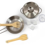 Im Lieferumfang: eine Pfanne aus Metall, ein Topf mit Deckel, ein hölzerner Wender und eine Gabel, ein transparenter Becher sowie 3 Eiswürfel. Die Küche wächst dank verstellbarer Verlängerungsteile der Füße mit dem Kind mit und sorgt so über viele Jahre für freudiges Spielen.
