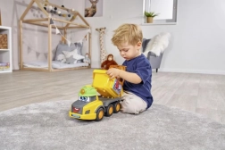Bringen Sie die Hände ins Spiel! – Mit dem Harry Spielzeug-LKW erleben Sie realistische Soundeffekte und die Möglichkeit, mit dem Formensortierer und anderen Spielelementen zu spielen.