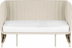 Die 7-stufige Längenverstellung der Beine ermöglicht die Anpassung an die Höhe des Elternbetts. Stabilisierende Gurte erhöhen die Sicherheit.