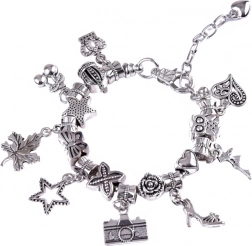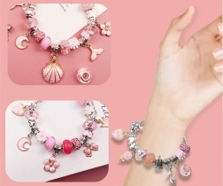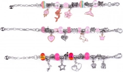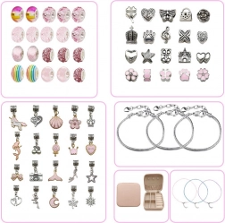 Das Set enthält alles Nötige für die Herstellung schöner Armbänder und Halsketten: verschiedene Perlen, Anhänger und Schnüre.