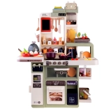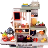 Diese geräumige Kinderküche aus Kunststoff in modernen Farben begeistert jedes Kind, das Rollenspiele rund ums Kochen liebt. Realistische Elemente wie leuchtende Kochfelder, Kochgeräusche und sicherer Dampf aus den Brennern sorgen für ein authentisches Erlebnis. Dank des funktionierenden Wasserhahns mit geschlossenem Wasserkreislauf können Kinder Abwaschen und sogar das Gießen von „Kräutern“ üben.