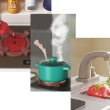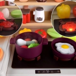 Beim Drehen des Knopfes leuchten die Kochfelder auf, realistische Geräusche ertönen und aus dem Brenner steigt sicherer Dampf auf – genau wie beim echten Kochen.