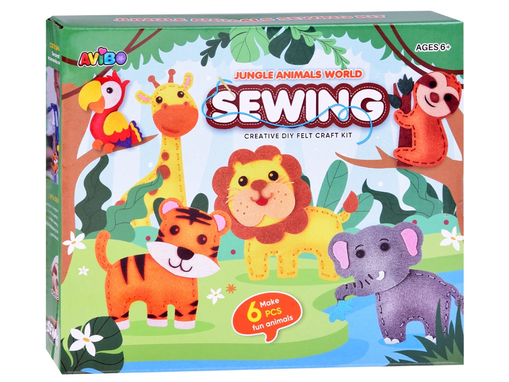 Kreativset Dschungeltiere zum Nähen ist ideal für kreatives Zeitvertreib, bei dem Sie Ihre manuellen Fähigkeiten erproben können. Dieses Set ermöglicht es Ihren Kindern, ihre eigenen Waldtiere zu gestalten.