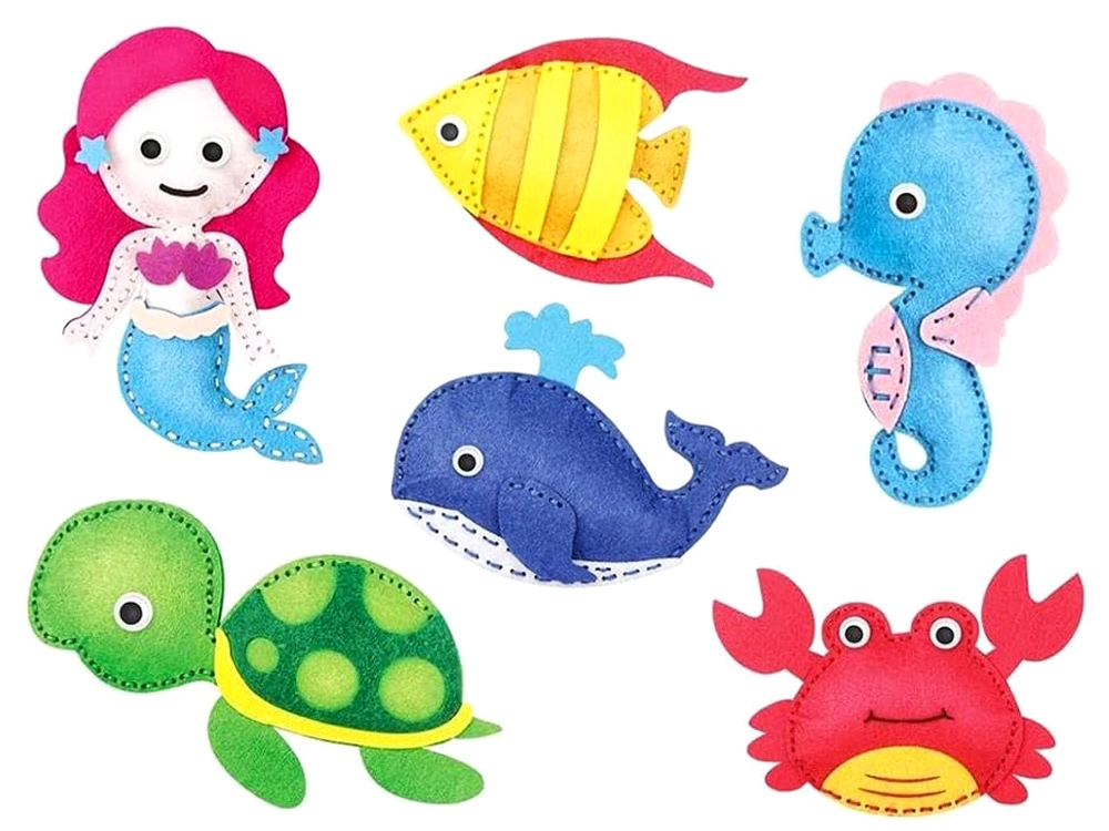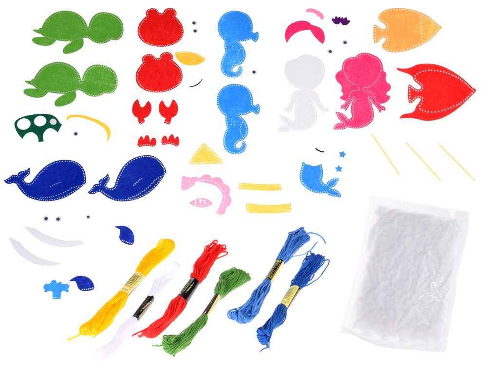 Kreativset Meeres-Tierchen ist ideal für Kinder und Erwachsene, die Handarbeiten mögen und ihre manuellen Fertigkeiten zeigen möchten. Dieses Set ermöglicht es Ihnen, eigene Filztiere aus der Unterwasserwelt zu gestalten.