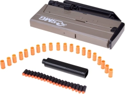 Das abnehmbare Magazin und die beiliegenden Patronenhülsen mit Pfeilen ermöglichen schnelles Nachladen und unterbrechungsfreien Spielspaß.
