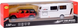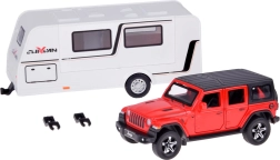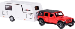 Das Set aus Geländewagen und Wohnwagen bietet Kindern realistisches Spiel rund um Reisen und Camping. Die Metall-Kunststoff-Konstruktion sorgt für Haltbarkeit und lange Lebensdauer, während Licht und Sound das Fahrerlebnis verstärken. Dank des Pull-back-Antriebs reicht es, das Auto nach hinten zu ziehen und loszulassen – es fährt von selbst nach vorne.