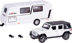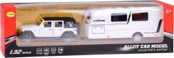 Geländewagen mit Wohnwagen mit Licht und Sound 1:32 – weiß
