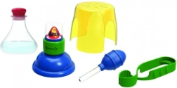 Die Ausstattung umfasst eine vorgefüllte und versiegelte Flasche, die den Erhitzungsprozess simuliert. Zudem enthält das Set ein Benutzerhandbuch mit Experimenten, damit die Kinder Schritt für Schritt vorgehen können. Des Weiteren gibt es Zubehör wie Pipette, Klemme und Schutzbrille für ein realistisches Erlebnis.