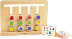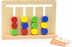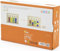 Dieses clevere und langlebige Lernspiel fördert logisches Denken, Feinmotorik und Konzentration. Kinder platzieren die Klötze an die richtigen Positionen und reproduzieren die Karten mit einzelnen Aufgaben – zunächst nach Farben, später nach geometrischen Formen. Das Spiel führt auf natürliche Weise zum Planen der Bewegungsabfolge und trainiert Geduld.