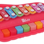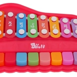 Dieses unterhaltsame Spielzeug vereint Pianino und Xylophon in einem kompakten Set, das Kinder zum ersten Musizieren motiviert. Die robuste Ausführung aus Kunststoff und Metall sorgt für Langlebigkeit und sicheres Spielen.