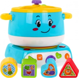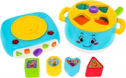 Der interaktive Herd ist ideal für kleine Köche und bietet eine Kombination aus Licht- und Soundeffekten, die das Kochen simulieren. Das Spielzeug imitiert Geräusche von kochendem Wasser, Braten und dem Zünden des Gases, ergänzt durch fröhliche Melodien und blinkende Lichter. Das Spielzeug hilft Kindern, manuelle Fähigkeiten zu entwickeln und die richtigen Formen den entsprechenden Öffnungen zuzuordnen.