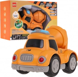 Teil des Spielzeugs ist ein rotierender Betonmischer, der den Kindern die Möglichkeit bietet, realistische Bauarbeiten nachzuahmen und ihr Spiel zu bereichern.