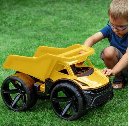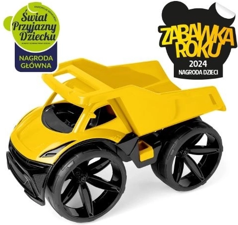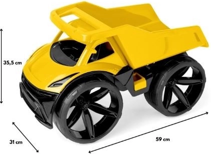 MAXIMUS ist ein großer Kipper in saftigem Rot, der sich auszeichnet durch: modernes Design, stabile und leichte Konstruktion, moderne Karosserielinien mit großen matten Rädern und schönen Details. Außerdem verfügt er über eine bewegliche, zu öffnende Pumpe und einen bequemen Griff, der vielfältiges und realistisches Spielen ermöglicht, sowie zum Transport von Sand oder anderen Spielsachen verwendet werden kann. Das Fahrzeug ist 59 cm lang.