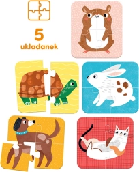 Diese unterhaltsamen Puzzles machen Kinder mit bekannten Haustieren vertraut. Jedes vierteilige Puzzle stellt ein Tier vor, was die Feinmotorik und Aufmerksamkeit fördert.