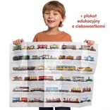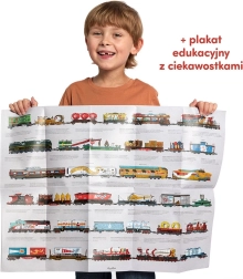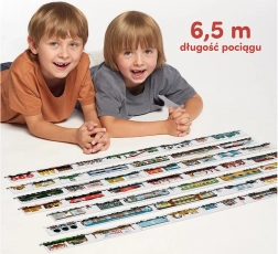Das Puzzle enthält 54 beidseitig gestaltete Teile und ein Lehrplakat mit interessanten Fakten aus Technik und Verkehrsgeschichte. Kinder und Erwachsene können in die Welt der Eisenbahnen eintauchen und viel Neues lernen.