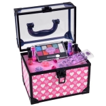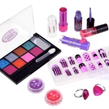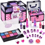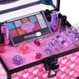 Das Set enthält alles für eine komplette Verwandlung: cremige Lidschatten mit Applikator, glitzernde Lipglosse und Lippenstifte, Nagellacke, selbstklebende Tips mit fertigen Designs sowie niedliche herzförmige Ringe. Das Spiel mit Kosmetik fördert die Feinmotorik, das Farbgefühl und unterstützt die Selbstentfaltung.