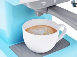 Stilvolle Kinder-Kaffeemaschine für kleine Baristas bringt realistisches Café-Spiel. Sie hat einen verschließbaren Wassertank, einen herausnehmbaren Siebträger (Portafilter), eine bewegliche Dampfdüse zum Aufschäumen von Milch sowie Licht- und Soundeffekte. Ein tolles Zubehör für die Kinderküche und kreatives Spiel.