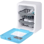 Diese Kindergeschirrspülmaschine bringt realistische Elemente ins Spiel: vom Wasserrauschen und Spül-/Sterilisationsgeräusch bis zur Programmschluss-Signalisierung. Dank des Touchpanels wählen kleine Helfer leicht Modus und Zeit. Die öffnende Tür und die zweistufigen Körbe ermöglichen bequemes Einräumen von Tellern, Bechern und Besteck.