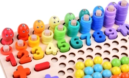 Dank der hochwertigen Holzgrundplatte und der farbenfrohen Komponenten ist das Set ideal für Vorschulkinder und jüngere Schulkinder. So wird das Lernen von Mathematik zu einem natürlichen Teil des Spiels und täglichen Entdeckens.
