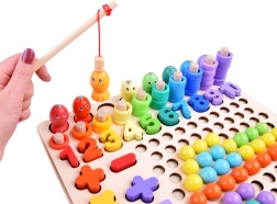 Fangen Sie bunte Fischchen mit einer Holzangel mit Magnet und platzieren Sie sie an den richtigen Stellen. Die unterhaltsame Aktivität stärkt die Augen-Hand-Koordination und die Geduld.