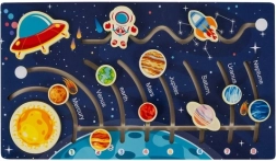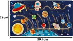 Dieses ästhetisch gestaltete Holzpuzzle bringt Kindern das Sonnensystem mithilfe beweglicher Elemente in Führungsrillen näher, bei denen die Kinder Planeten den Namen und Zahlen zuordnen. So eignen sie sich spielerisch die Reihenfolge der Planeten an und entwickeln Feinmotorik, Logik und Konzentration.